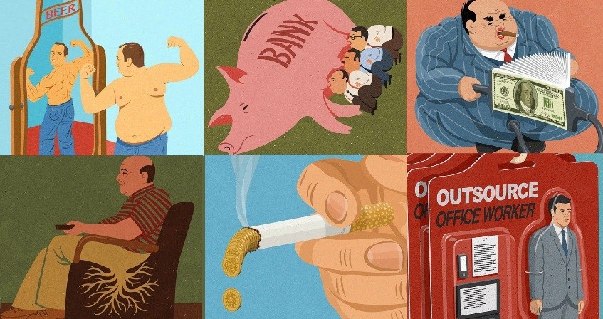 Ο καλλιτέχνης John Holcroft, γνωστός για τις εικονογραφημένες διαφημίσεις με στιλ του 1950, μεταφέρει εξαιρετικά σατιρικά μηνύματα για τη σύγχρονη κοινωνία μας.