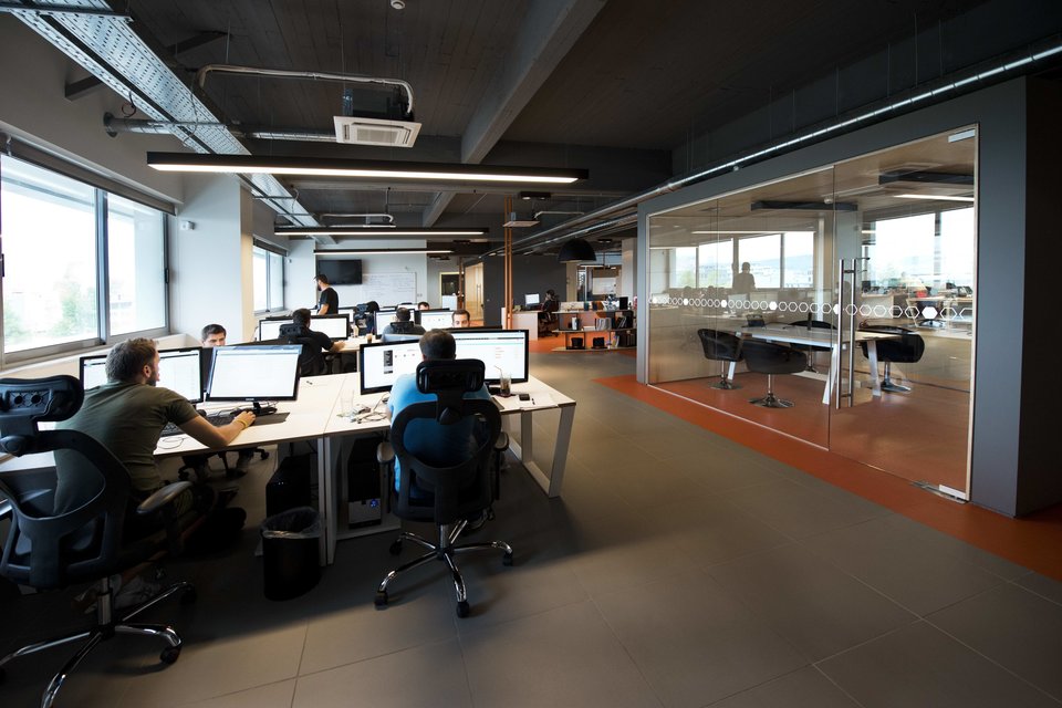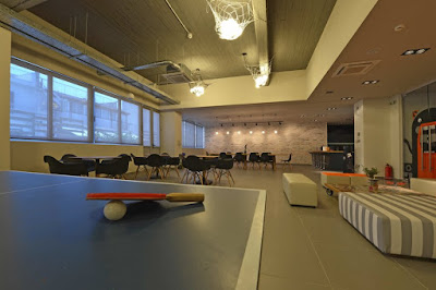 Με το που περνάς την πόρτα, νομίζεις ότι πέρασες και τα σύνορα, άλλαξες χώρα και βρίσκεσαι πλέον σε μια από αυτές τις εταιρείες που διαβάζεις σε ξένα site με διθυραμβικά σχόλια για το εργασιακό τους περιβάλλον. Πολλά χρώματα, φως, μοντέρνα διακόσμηση, δύο υπέροχες κουζίνες σαν αυτές που θα ήθελες να έχεις και σπίτι σου, με καφέ, φρούτα, δημητριακά, open space με ευρύχωρα γραφεία –όχι σαν αυτά που αν απλώσεις έστω και λίγο το χέρι σου θα σκουντήσεις τον διπλανό σου - κλειστοί χώροι που μπορείς να απομονωθείς για να μιλήσεις με την ησυχία σου στο τηλέφωνο, σκάκι (!), βιβλία (!), κάπου πήρε το μάτι μου και ένα τραπέζι για πινγκ πονγκ. Συνολικά 3.000 τ.μ.