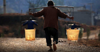 Μια γριά γυναίκα, Κινέζα κουβαλούσε νερό με δύο μεγάλα δοχεία κρεμασμένα από τους ώμους της. Το ένα δοχείο ήταν άψογο και μετέφερε πάντα όλη την ποσότητα νερού που έπαιρνε. Το άλλο είχε μια ρωγμή και στο τέλος της μακριάς διαδρομής από το ρυάκι στο σπίτι,έφθανε μισοάδειο.